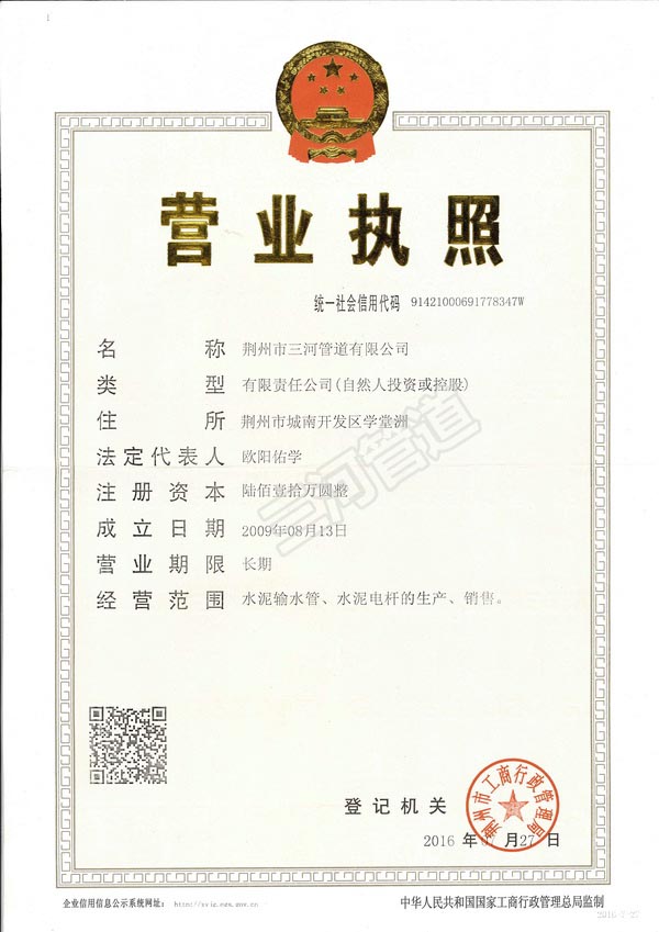 公司重合同、守信誉,注重企业管理,曾荣获获省级先进企业称号,也是率先获得国家颁发许可证的企业之一(全国工业产品许可证编号:鄂XK-08-002-00046),企业经营呈良性发展,在湖北省内有较高的知名度。经过多年的生产实践,积累了相当丰富的经验,在同行业率先创造出悬辊法等先进生产工艺,生产的产品质量过硬,在全省的行检中多次名列前茅,并获得部优称号。我公司先后为襄石铁路、襄荆高速公路、襄荆高速至荆州长江大桥连线、荆东高速公路、随岳高速公路以及其它较大型的市政、公路、铁路工程等生产重型加厚圆管涵近万根,经对方监理检测,全部一次合格,深得用户好评。我公司己为国家重点工程共生产了数万根大、重型圆管涵,有很长生产的历史,培养了一支善打硬仗素质过硬作风顽强机动灵活的队伍,具备异地办厂的能力、经验和教训。
